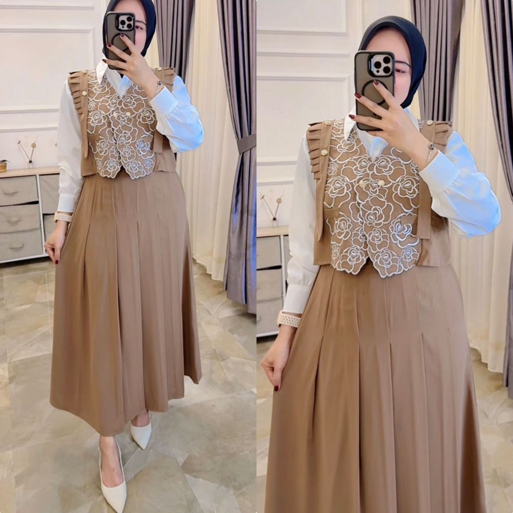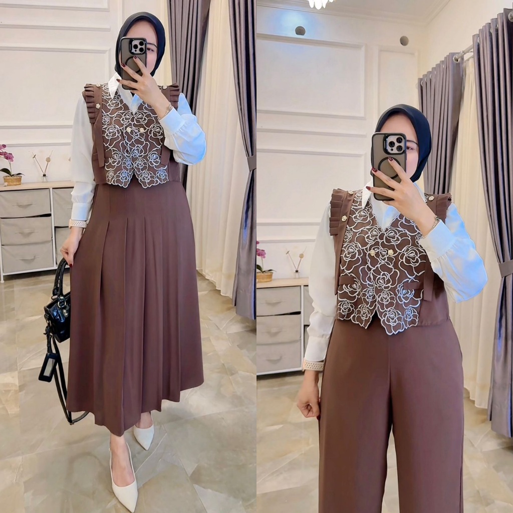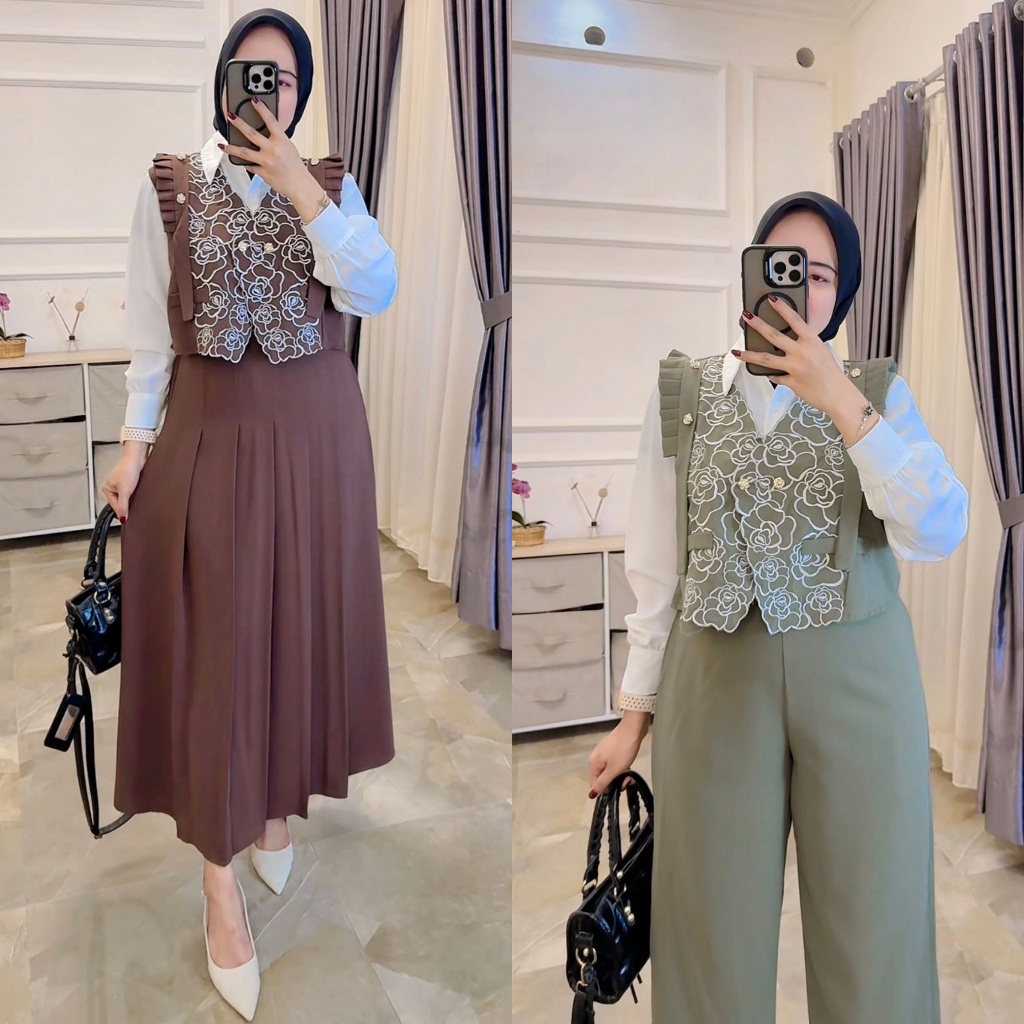 Azuka oneset Rok dan Celana 3in1 Linen Tunica Atasan Blouse Wanita Coquette Aesthetic Casual Korean Style