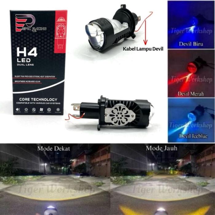 Lampu Utama Ex6 Pro Blue Lens H4 Projector Dengan Devil Eye Plus Kipas Pendingin Full Aluminium Waterproof - Devil Merah
