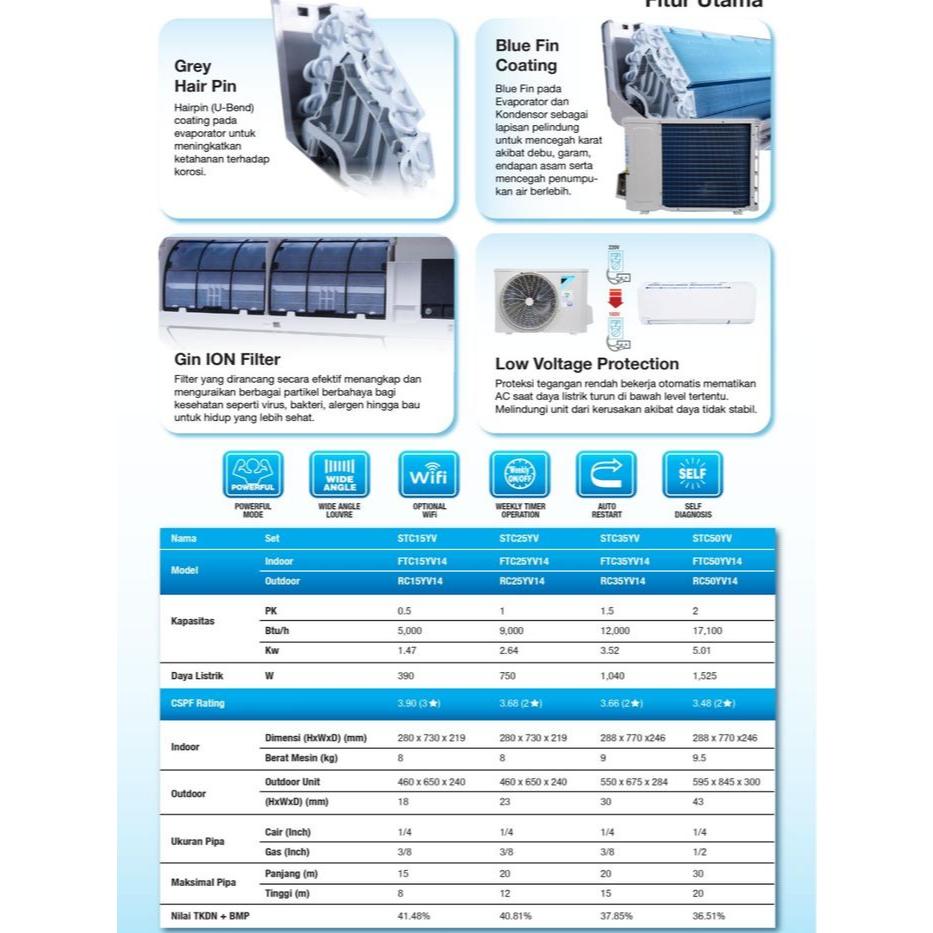DAIKIN Standard Type STC - Nusantara Prestige Made in Indonesia - 1/2PK FTC15YV14 / 1PK FTC25YV14 / 1,5PK FTC35YV14 / 2PK FTC50YV14