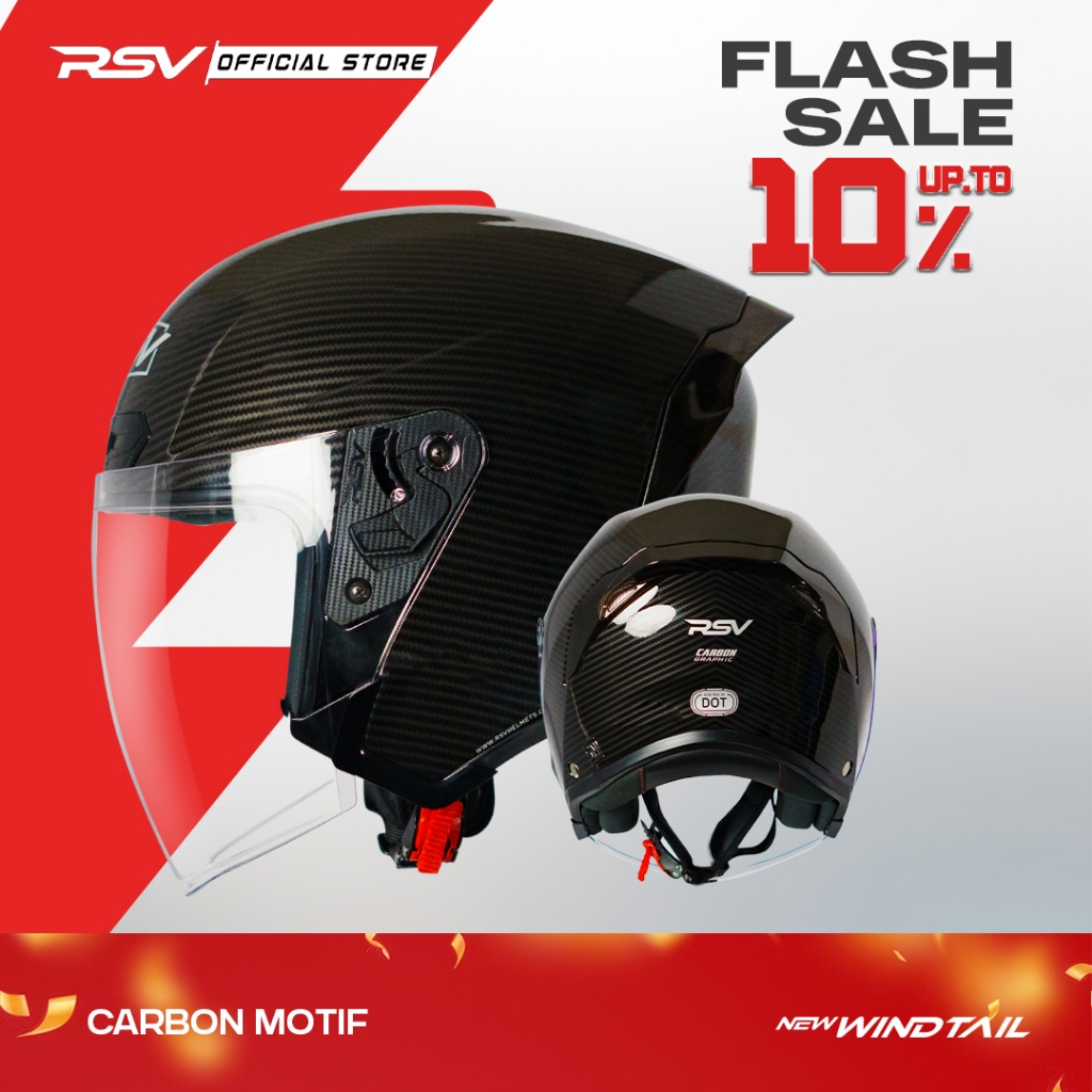 HELM RSV NEW WINDTAIL CARBON GLOSSY SINGLE VISOR - HELM HALF FACE UNISEX