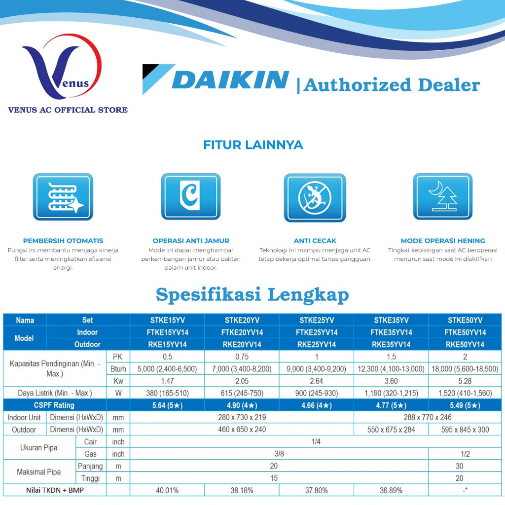 Ac DAIKIN 1 PK Inverter Beta FTKE-25YV Nusantara Series Tipe Terbaru