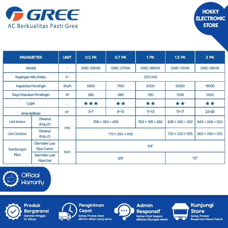 GREE GWC-09N1/A AC 1 PK Standard Gree 09N1/A Black Diamon Fin R32 780 Watt Garansi Resmi Gree Indonesia AC Split 1 Pk Gree 09N1/A