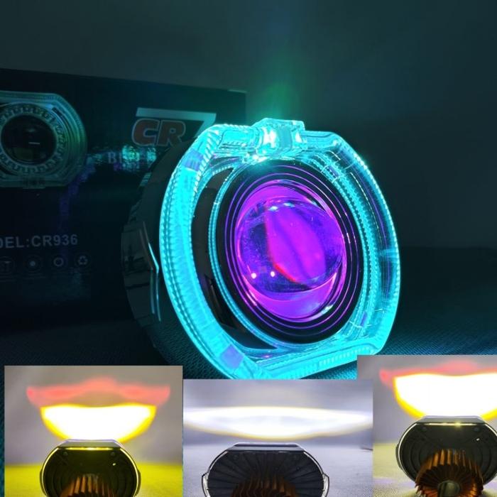 Lampu Utama Led Projector Biled Cahaya Laser Cut Off Jauh Dekat Plus Shroud Devil Biled 4,5 Inch Cr7 - Yw White-Purple