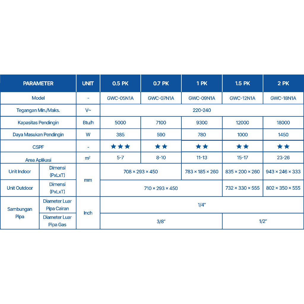 Gree GWC05N1 AC 1/2 PK Deluxe Standar GWC05N1 | N1A | GWC-05N1/A | 0,5 PK