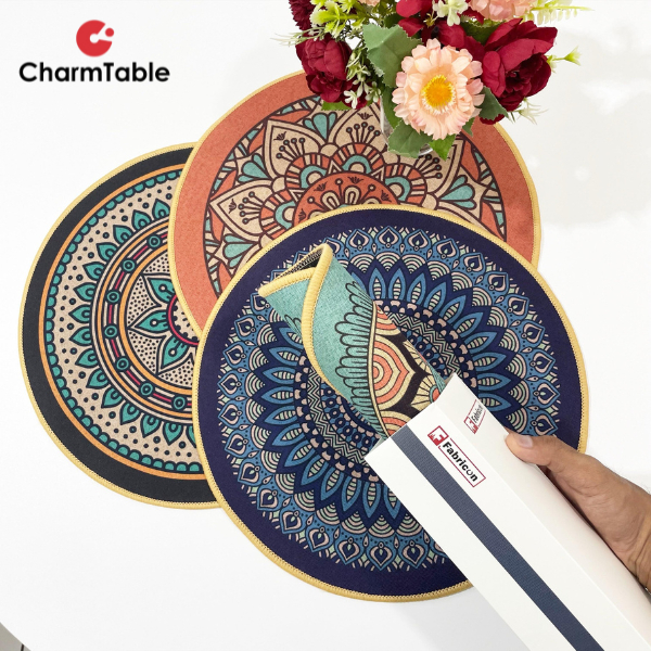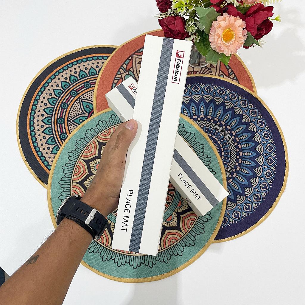 Placemat Set Alas Tatakan Piring Bulat Uk 38cm Isi 2pcs Alas Tatakan Meja Makan Motif Aesthetic 2V-Y