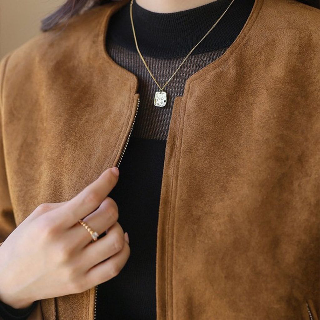 Womens Outer Suede Zipper Simple Elegant