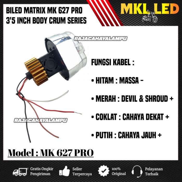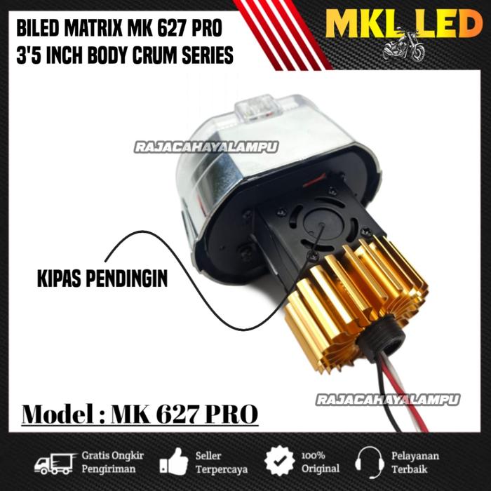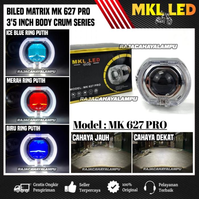 Lampu Projie Biled Matrix X1 3,5 Inch Mkl Led Mk 627 Pro Plus Kipas Pendingin Body Chrome - Mkl - Ice Blue Ring Putih, P