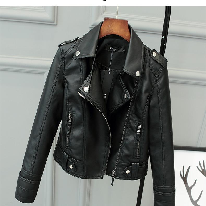 Delizia Jaket Kulit Wanita Crop Style Korea Semi Kulit Sintetis Cute Korean Leather Jacket