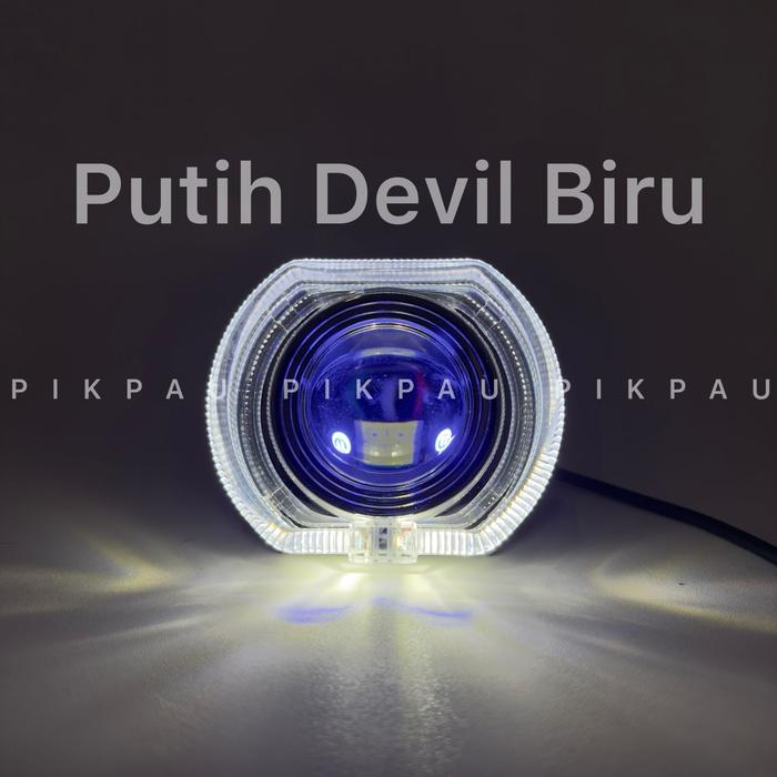 Lampu Projie Biled Laser Cut Off 4,5Inc Gen 3 Dengan Shroud + Devil Eye Full Aluminium Waterproof 5 Kabel - Putih De Ice