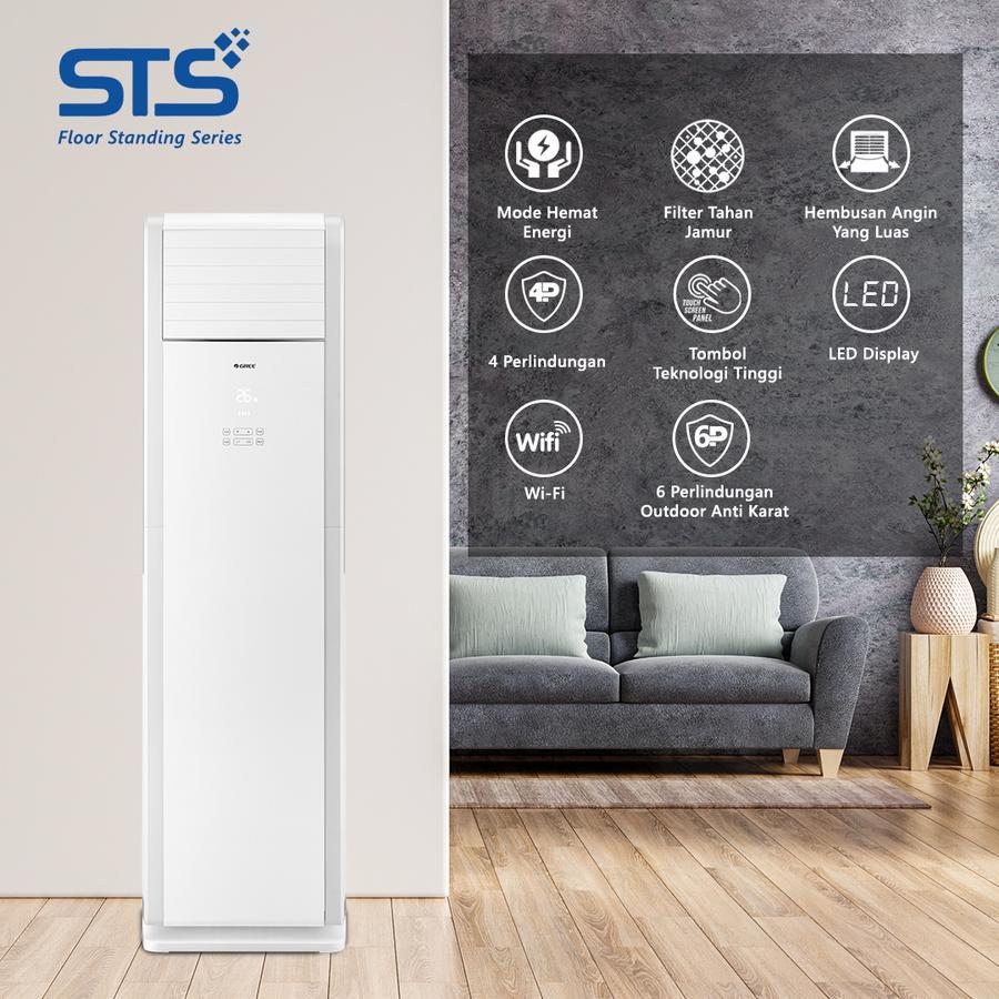 GREE GVC-24STS AC Deluxe Floor Standing Non-Inverter STS Series 3PK Pendingin Ruangan Smart WiFi Dengan LED Display Touchscreen GVC24STS BlueFin
