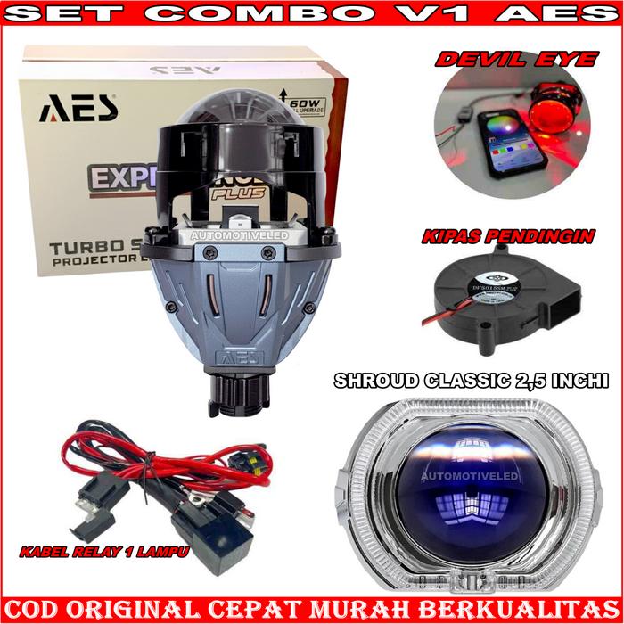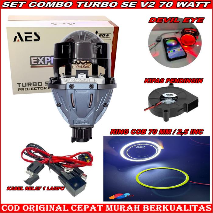 Aes Turbo Se V1 60W Led Chip 6000K 3200Lm Kabel Relay Set 2 Lampu Original Projie Aes Combo Paket Hemat Turbo Se V1 60 W
