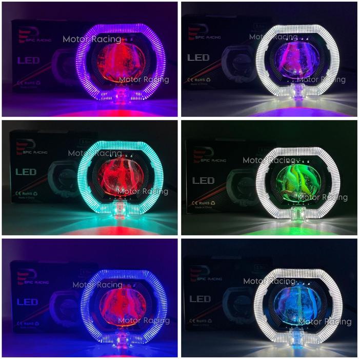 Lampu Projie Ala Ala Biled 3,5 Inch D2 D3 Led Plus Ring Shroud Devil Jauh Dekat Waterproof Universal - Putih+Ungu, Putih
