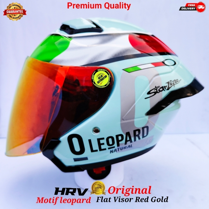 HELM HALF FACE HRV MOTIF LEOPARD KYROS SOLID ORIGINAL / MOTIF MONSTER / MOTIF SAMURAI SIZE M DAN L PREMIUM SNI ( )