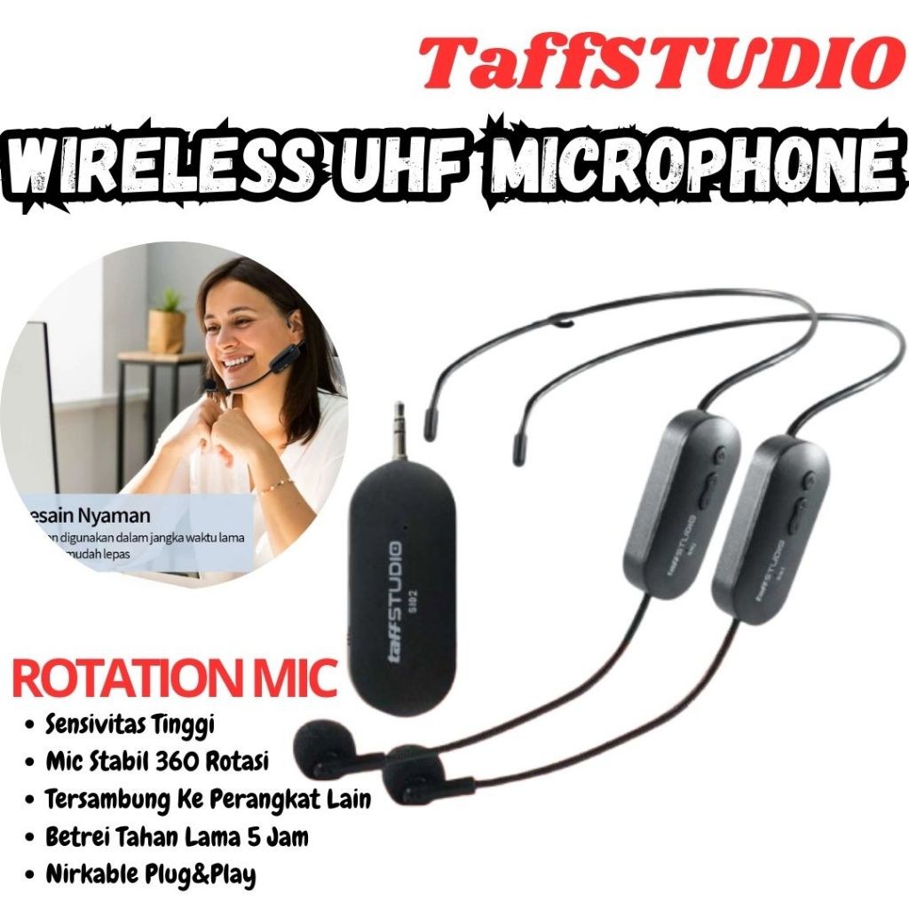SERBA TAFFSTUDIO MICROPHONE WIRELESS MIK BANDO IMAM MESJID TAMPA KABEL 2.4G HEADSET 2 PCS SI02