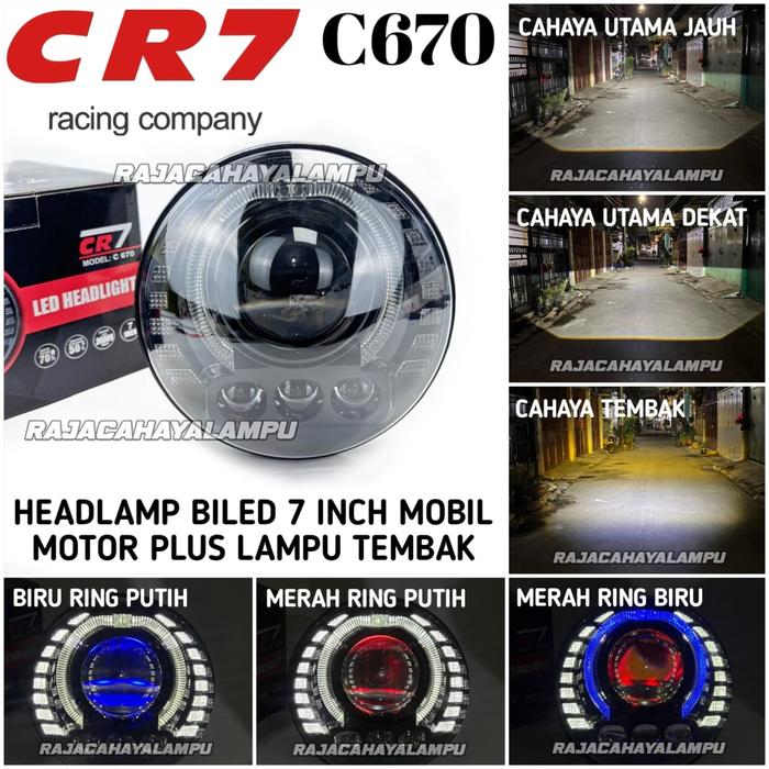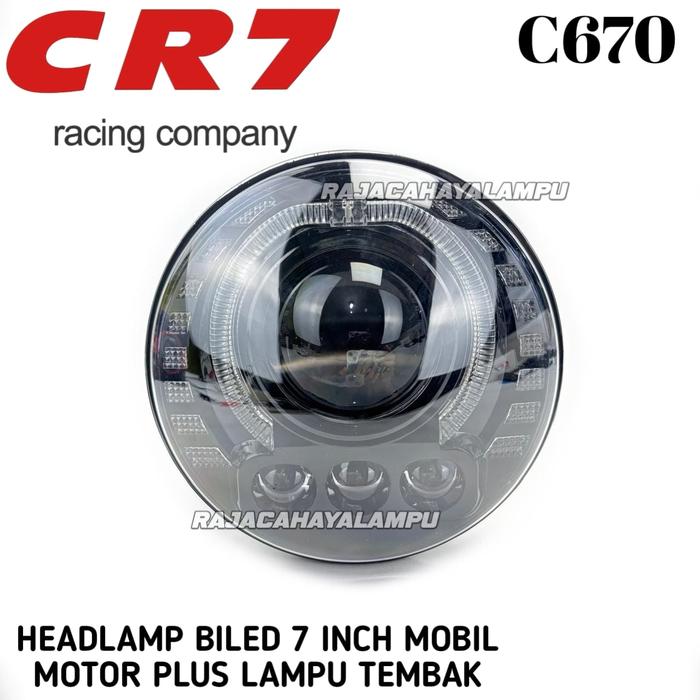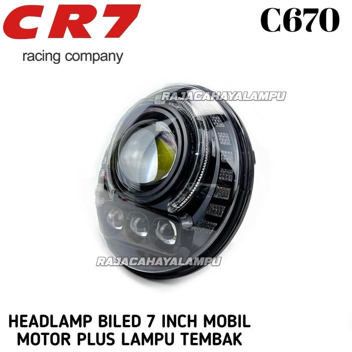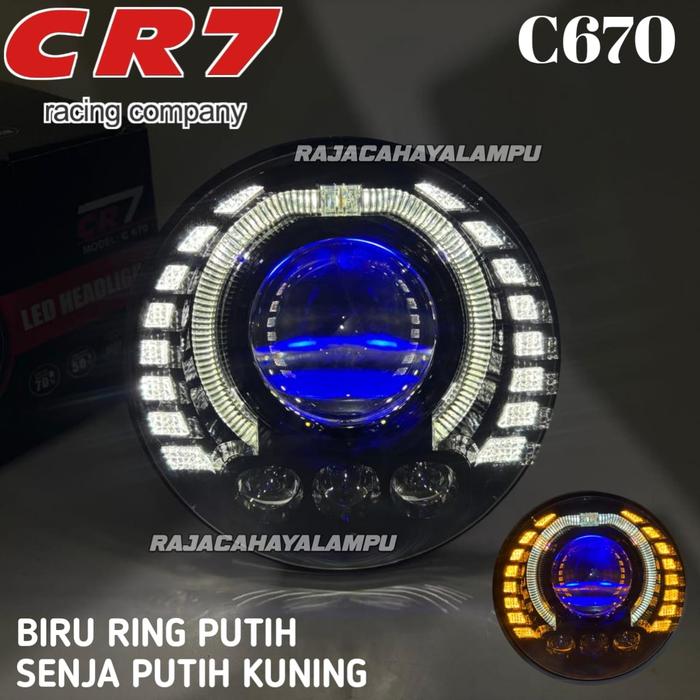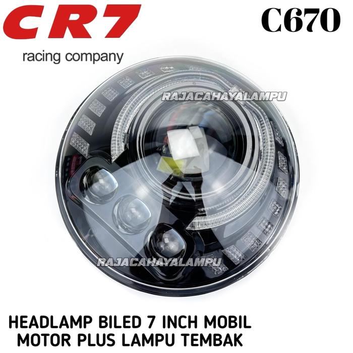 Cr7 C670 - Headlamp Biled Projector Bulat 7 Inch 3 Mata D2 Mobil Motor Ninja S Cbverza Vixion Rxking - C670 - Devil Biru