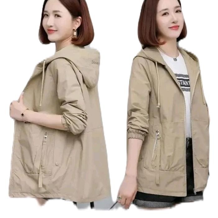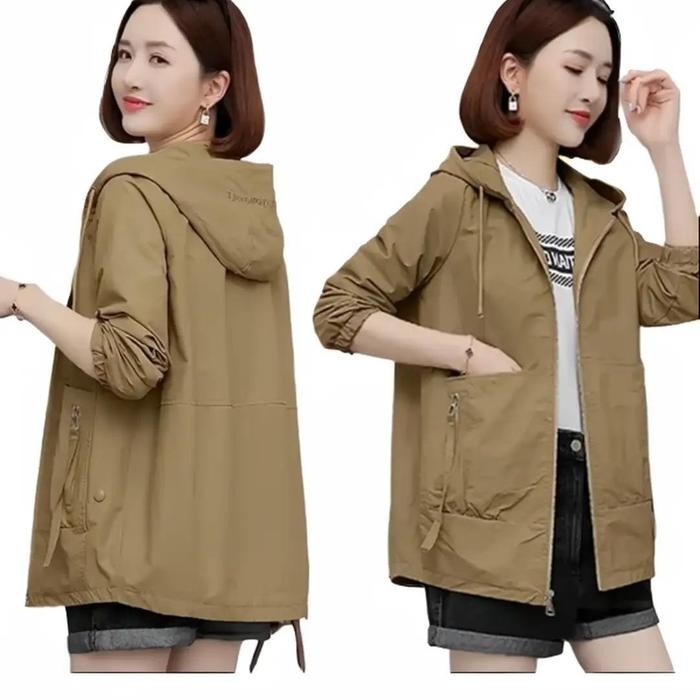 Rhn Jaket Wanita Korean Style Ringan Jacket Cewek Casual Musim Panas Polos Santai- Putih Tulang, M