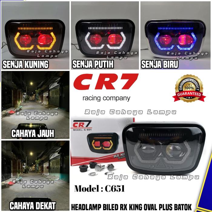 Lampu Headlamp Biled Matrix Owl 2 Mata Rx King Cr7 C651 High Low Plus 2 Mode Senja Set Batok - Biru - Kuning Devil Merah