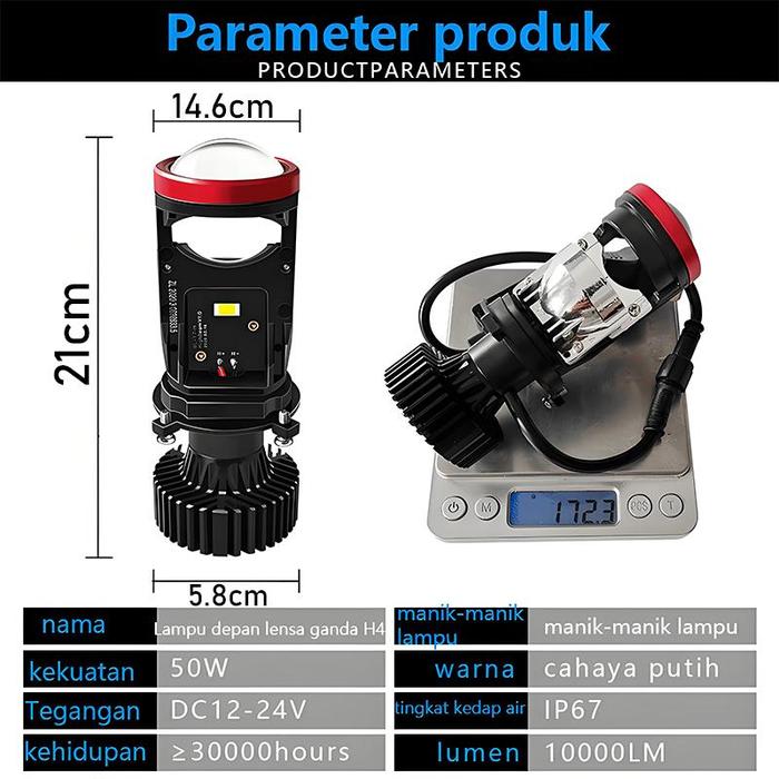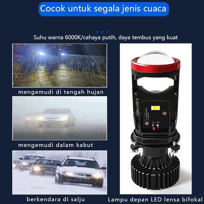 Baru Ditingkatkan Total 2Pcs Lampu Led Mobil Dan Motor H4 Mini Pjector Projie Y7D Super Bright 50 Watt/Dengan Kipas Angi
