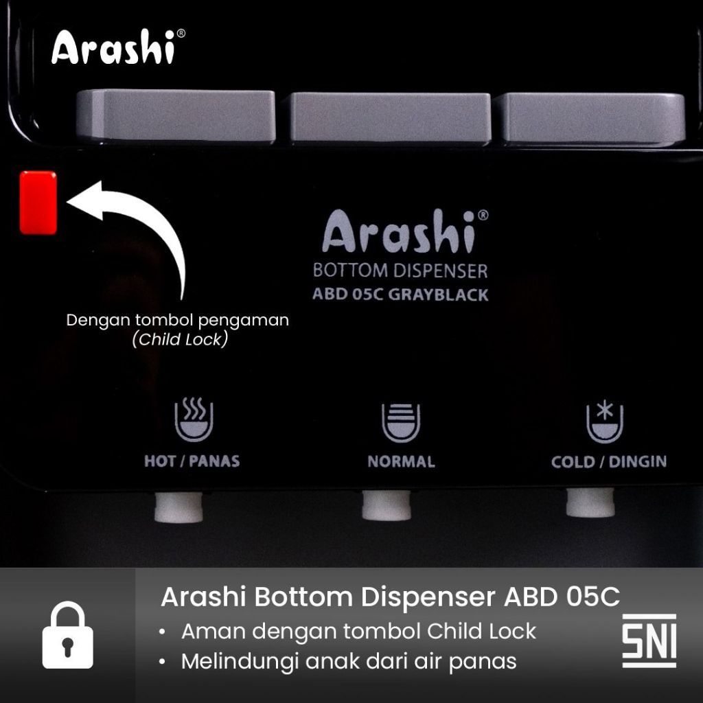 Arashi ABD03N Dispenser air Galon Bawah 2 Keran Panas dan Normal