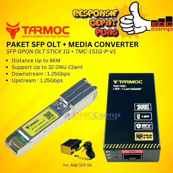PAKET TARMOC SFP GPON OLT STICK + MEDIA CONVERTER 1 SFP 1 LAN GIGABIT POE IN 9-57V | SFP-OLT-GPON32-1G + TMC-1S1G-P-V1