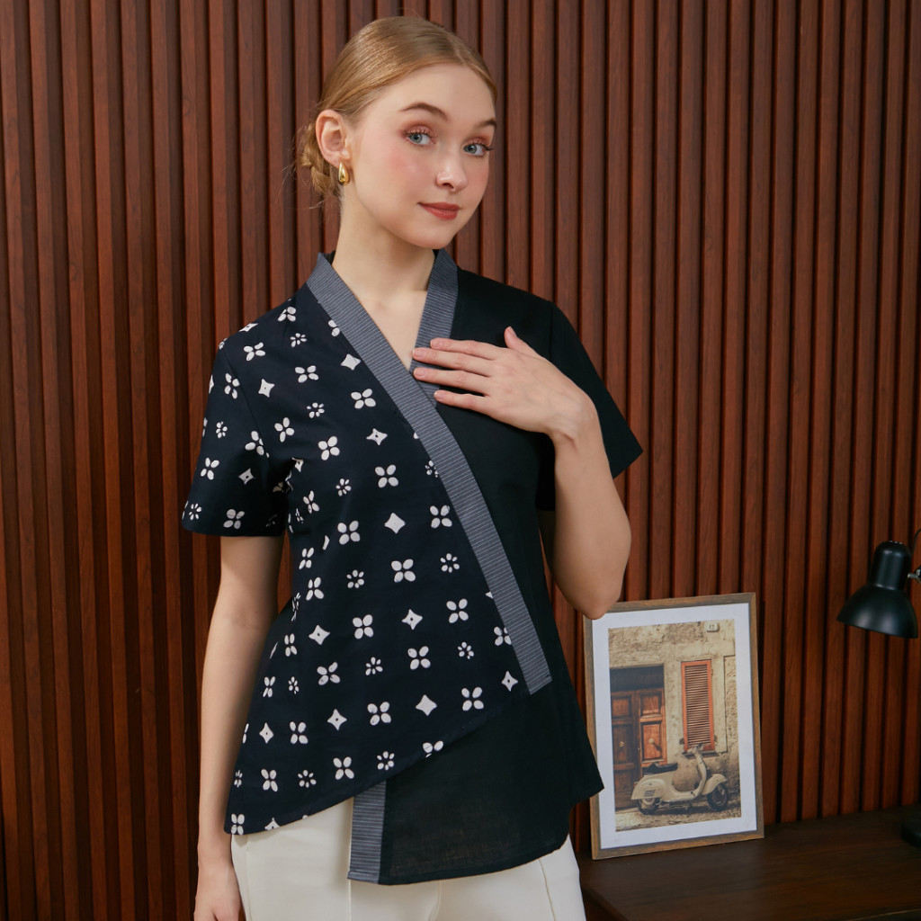 Nayara Kalina Blouse Batik Hitam Katun Oversize Fit Fashion Wanita