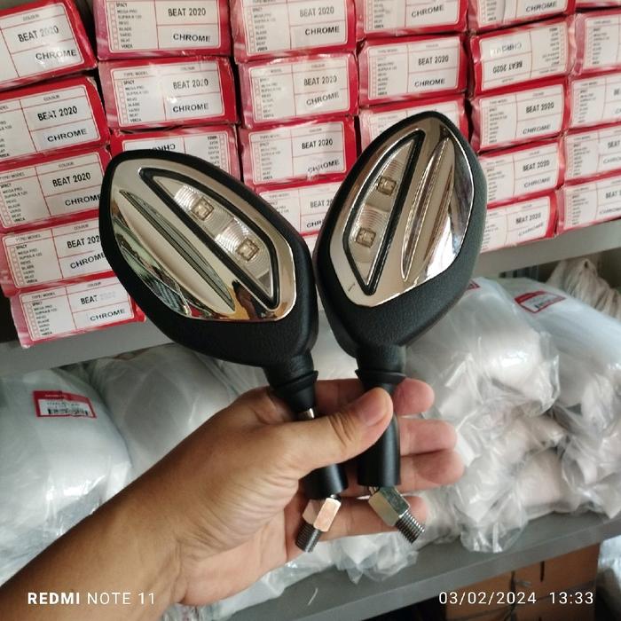 Spion Bubut 3 Jari Spion Motor Vario 125/150/160 Beat Scoopy Aerox Nmax Spion Led Bubut Tangkai Pendek Spion Led Style P