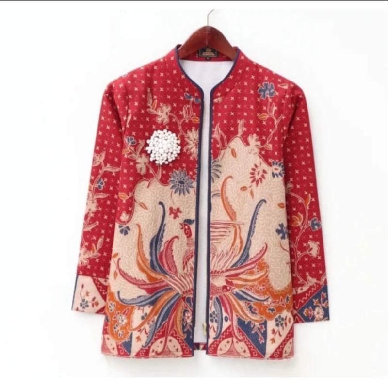 Atasan Batik Wanita Zipper Besar Ykk Motif Diana Merah Lapis Puring Tricot