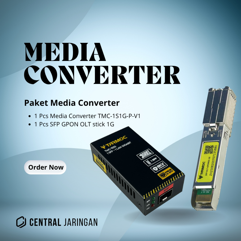 PAKET TARMOC SFP GPON OLT STICK + MEDIA CONVERTER 1 SFP 1 LAN GIGABIT POE IN 9-57V | SFP-OLT-GPON32-1G + TMC-1S1G-P-V1