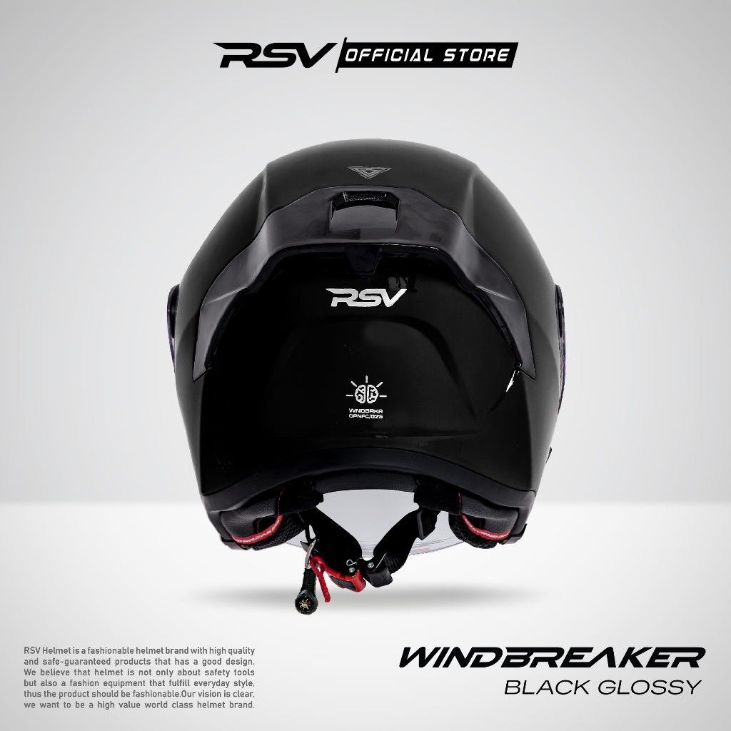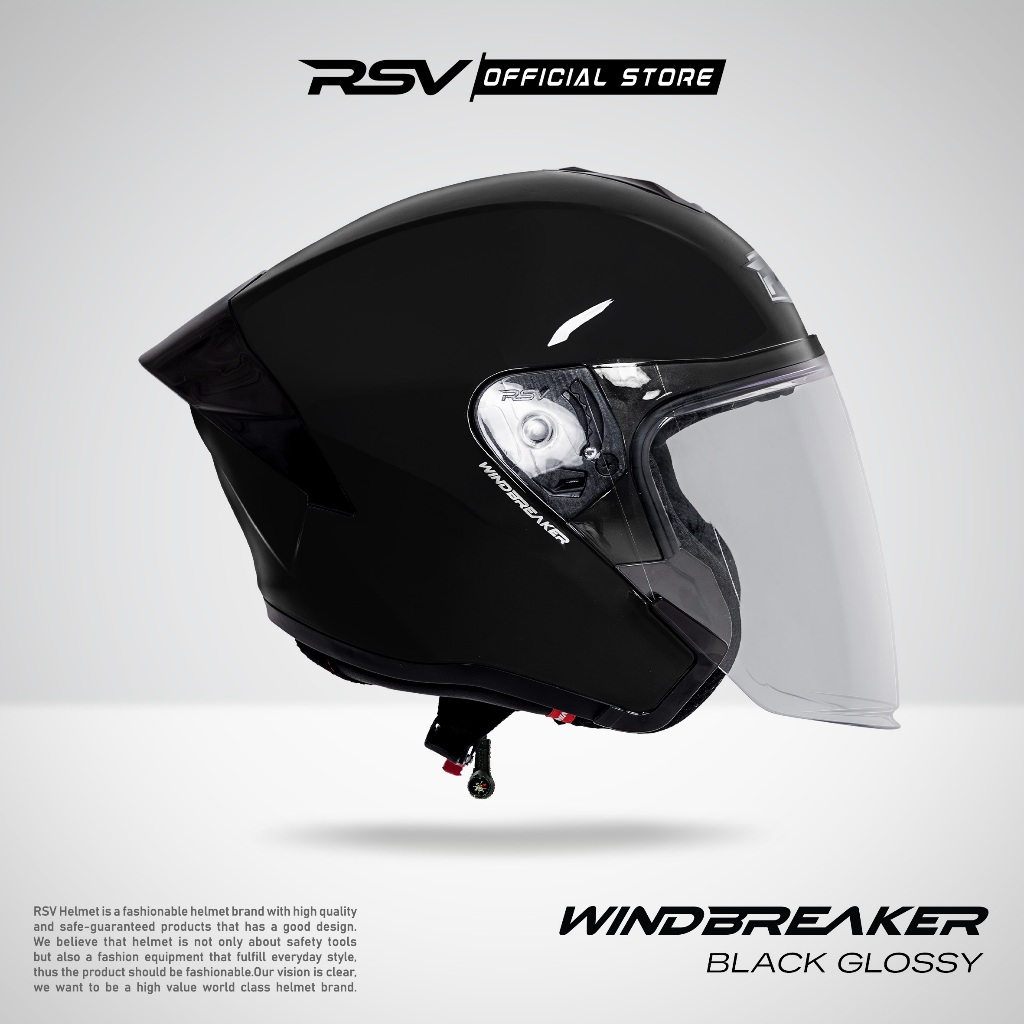 RSV Windbreaker Solid Black Glossy Single Visor - Helm Half Face SNI Unisex