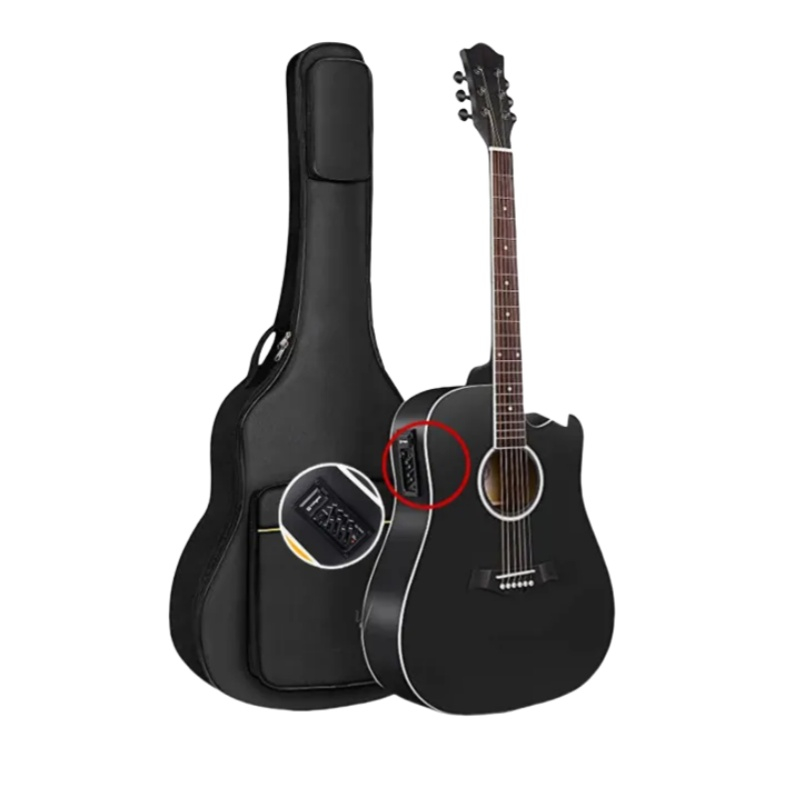 PLAYOU Low Action Gitar Akustik Elektrik 6 Senar Gitar Akustik Elektrik 41 inci Dengan Pickup 4EQ Dengan Tali Pengikat
