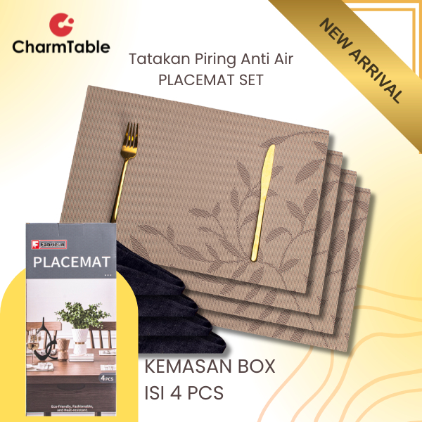 Placemat Set Tatakan Piring UK 30x45cm Premium Motif Daun Mewah Elegant Isi 4Pcs 4X-X10