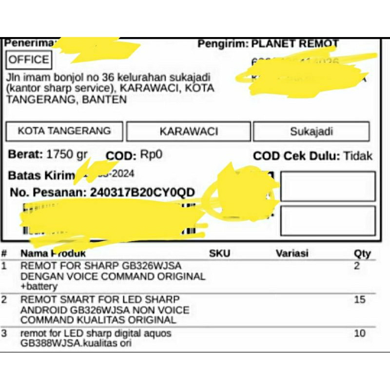 Remot Smart For Sharp Gb289Wjsa 2T-C40/45/50Ae1I +Free Battery Panasonic A3