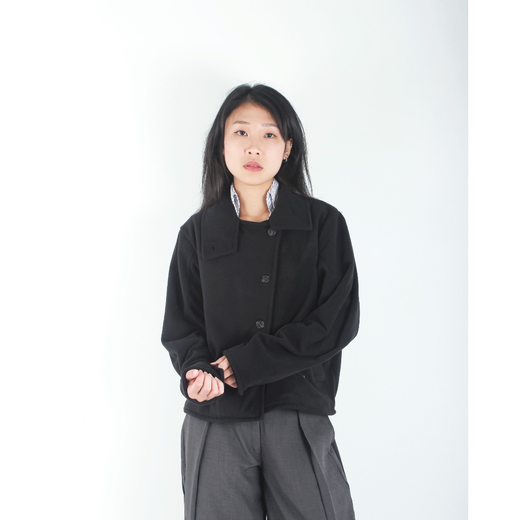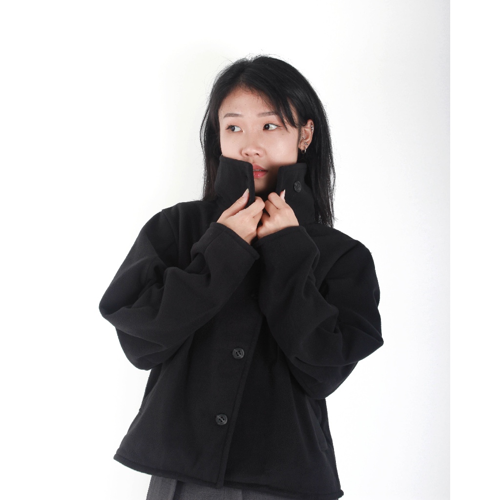 Lexy Fashion - Victoria Black Polar Fleece Coat Jacket Atasan Jaket Outerwear Wanita