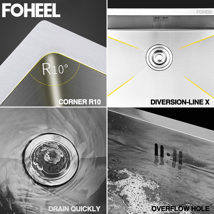 SUS304 Kitchen Sink Ketebalan Single Double Black & Silver Stainless Steel Free Drain&Basket Bak Cuci Piring Stainless E