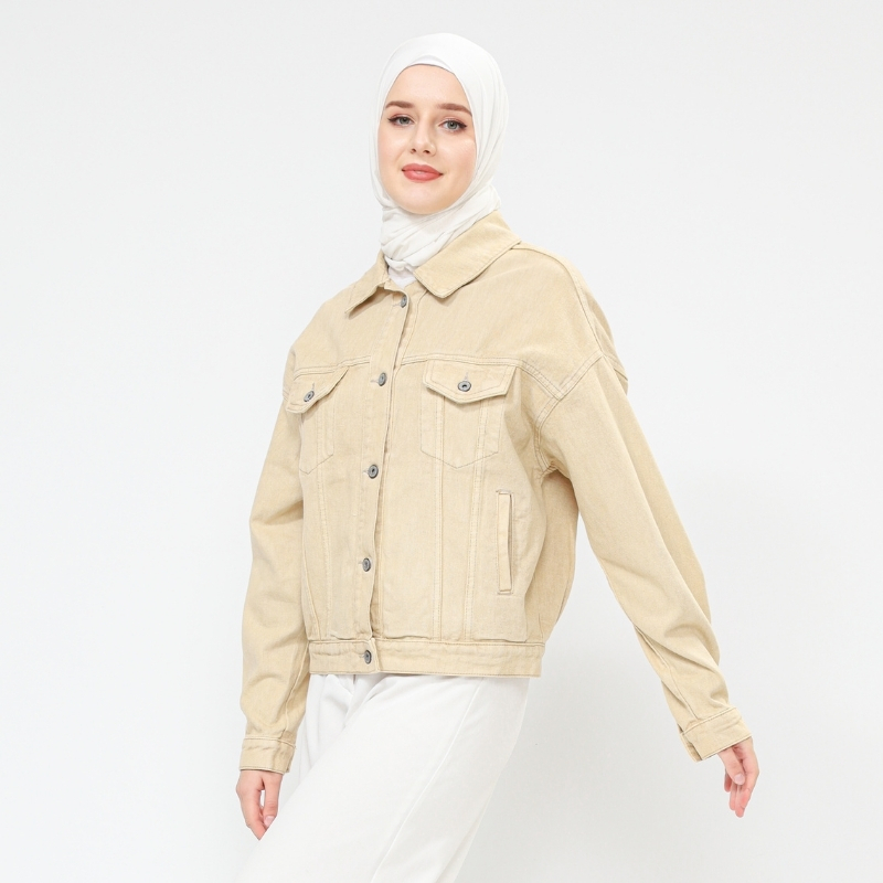 Myself Jaket Jeans Wanita Oversize Warna Khaki Lyra