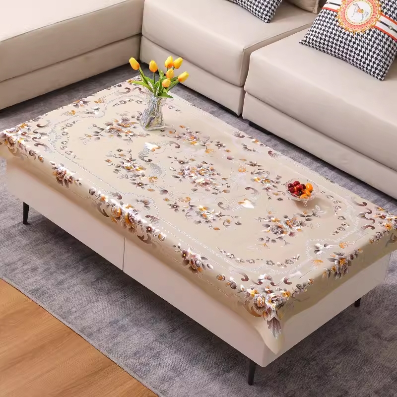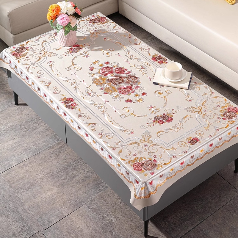 Taplak Meja Sultan Anti Air Bahan PVC Ukuran 90×150cm / Waterproof Alas Piring Meja Tamu / Motif Bunga Persegi Panjang Desain Mewah / Premium Tahan Panas