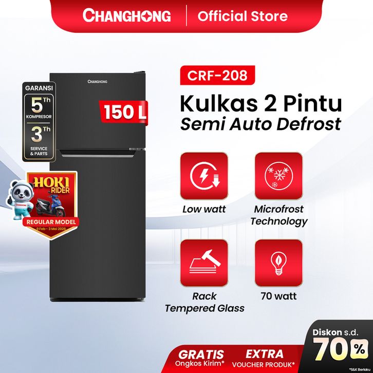 [Mall] Kulkas 2 Pintu Changhong CRF208 Kapasitas 150 Liter Refrigerator Black Bergaransi Resmi Termurah Tanpa DP 0