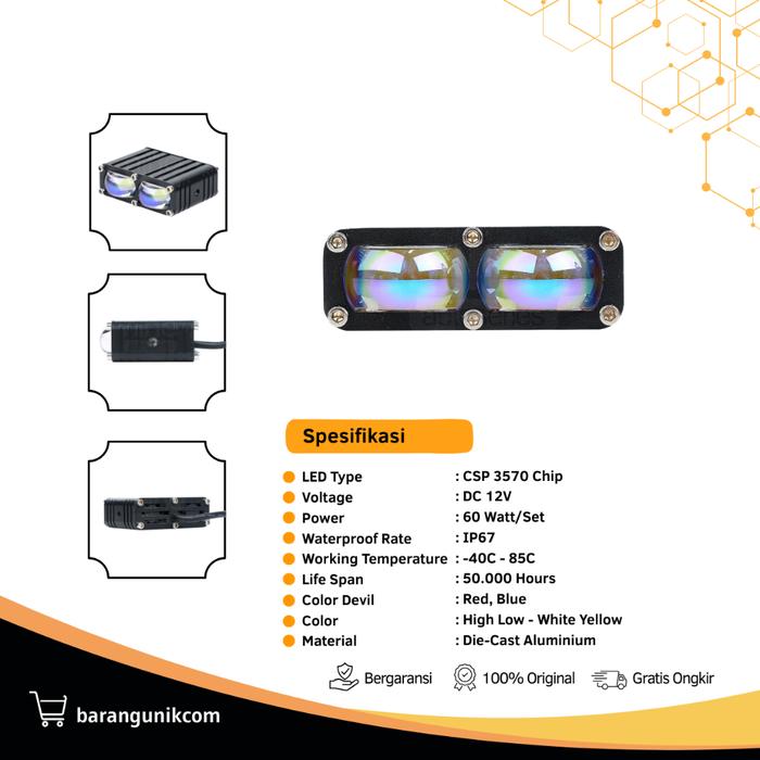 Lampu Tembak Laser 60W Projie Biled Slim Mobil Motor 2 Mata Cahaya Terang Devil Eye Mg2 Luximos Nine - Ice Blue, Satuan