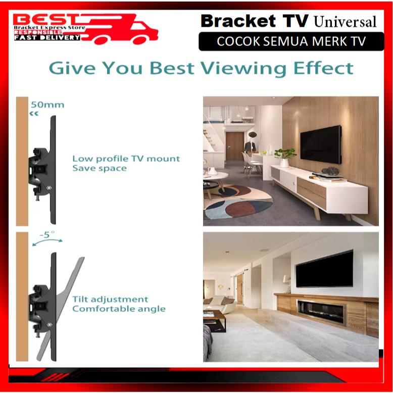 FREE GIFT Bracket tv 21" s/d 55" Universal 21 24 32 40 42 43 50 55 inch 100 PERSEN FULL BESI BEST QUALITY Bracket tv Braket tv Breket tv Briket tv Brackettv Brakettv Brekettv Brikettv