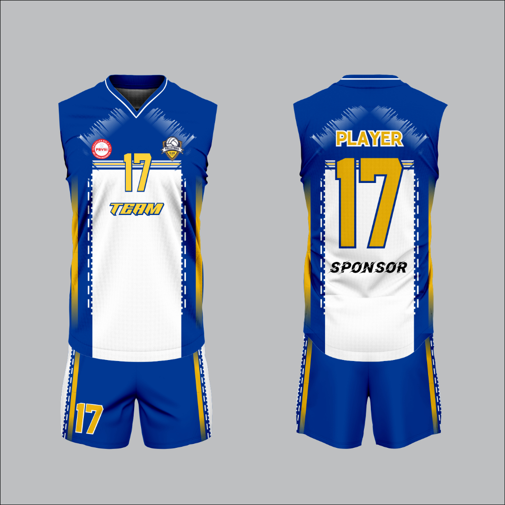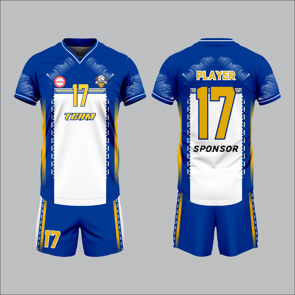 Jersey voli / volly pria wanita full printing biru putih kuning free nama nomor dan logo