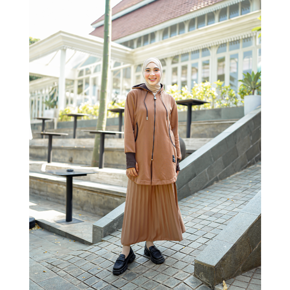 Hijacket Elektra Jaket Wanita Muslimah Modis Dengan Handsock Jaket Fleece Hangat & Stylish