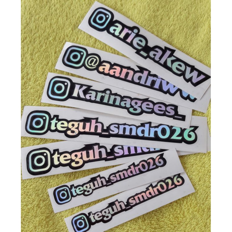 Stiker holo nama, custom, stiker laptop, stiker motor
