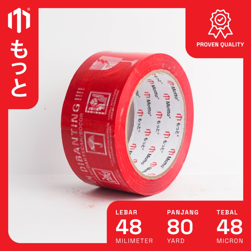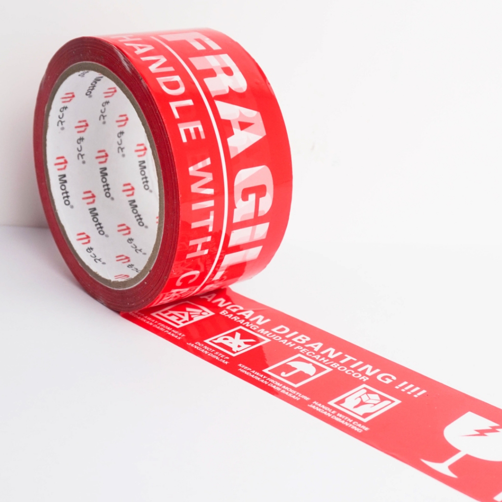 Lakban Fragile 48mm x 80 Yard Merah - 1 Pcs/Roll Satuan - Motto Tape