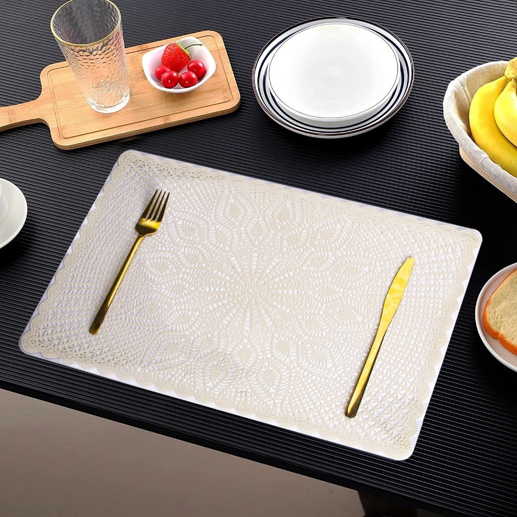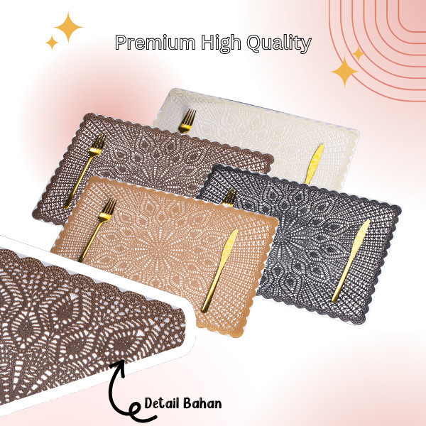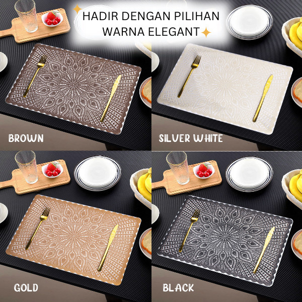 Placemat Set Isi 4 Pcs Uk 44x30 cm Bahan PVC Hollow Rongga Alas Piring Tatakan Piring & Gelas 4U-X01