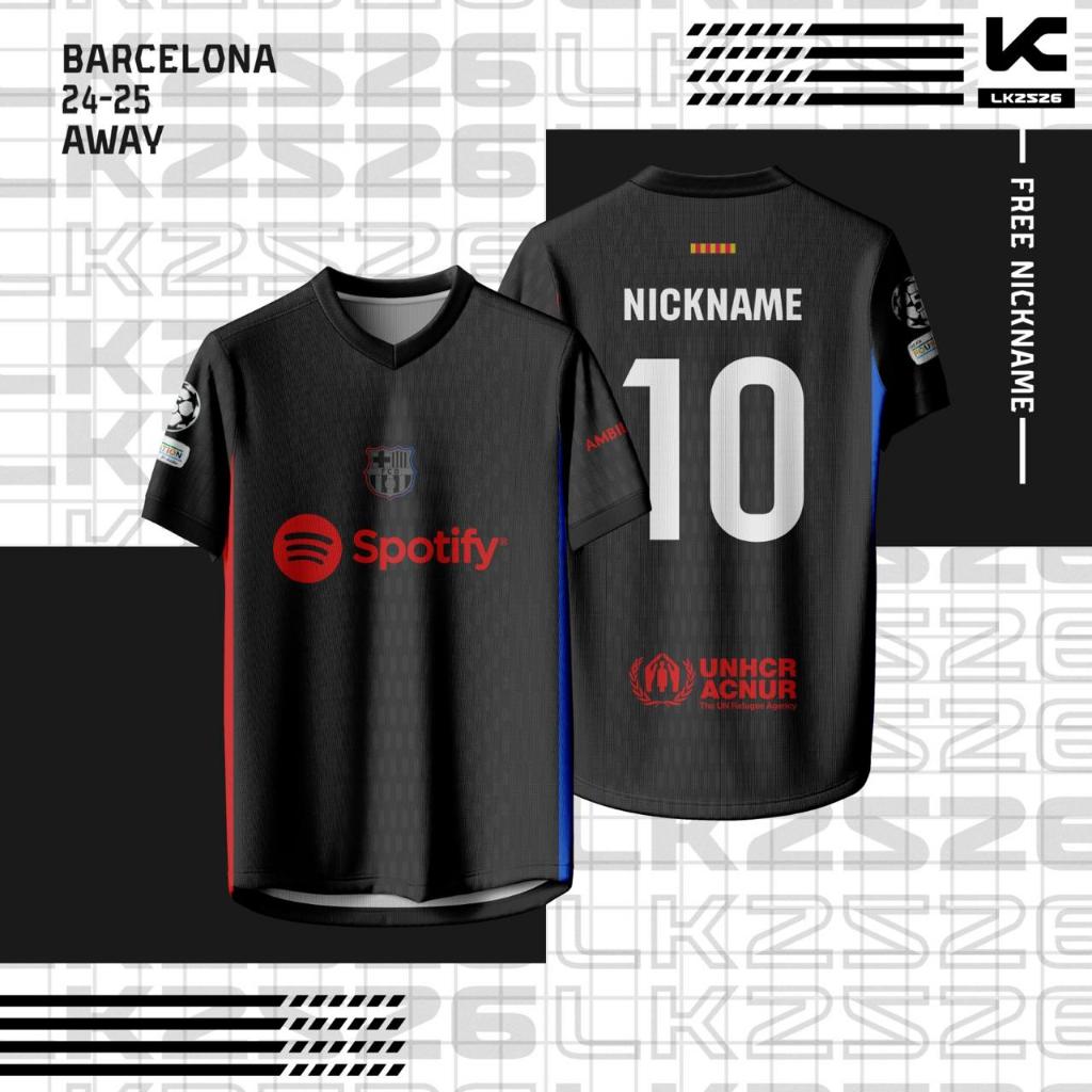 Jersey Bola Blaugrana Away 2024/2025 | Lamine Yamal Hitam Full Print | Fans Edition Sport