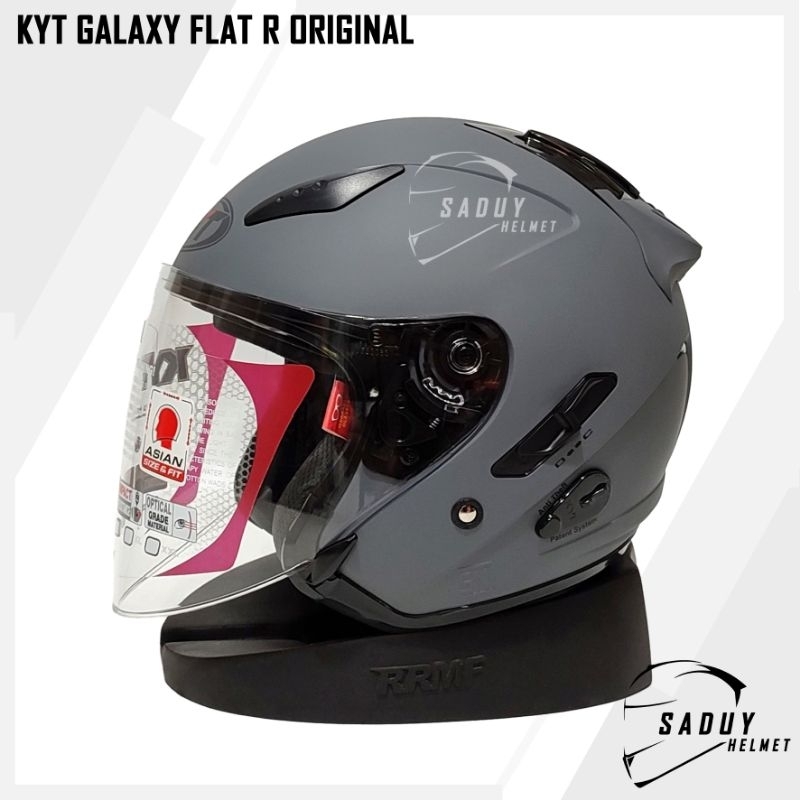 KYT GALAXY FLAT R SOLID GORILA GREY DOP / ABU DOP - PAKET GANTENG HELM KYT HALF FACE DOUBLE VISOR