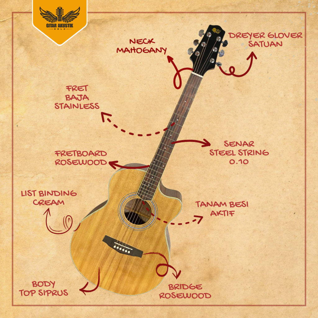 Gitar Akustik OZY PRS-100 Original / Gitar Akustik Ori Tanam Besi bonus tas