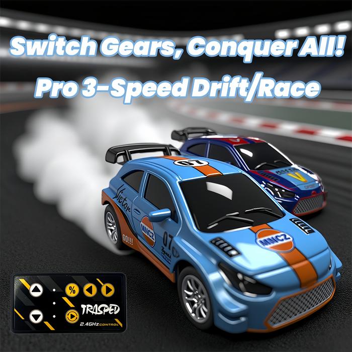 Mobil RC Skala 1:64 Die-Cast Miniatur 3 Gigi Kecepatan Mode Drift Lampu LED USB-C Kontrol Aplikasi &