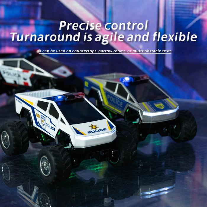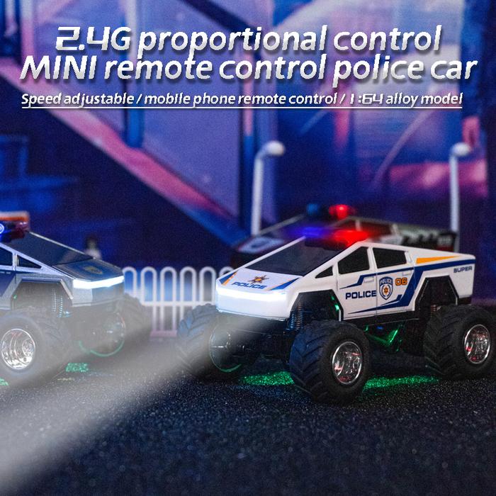 POKO 1/64 Mini RC Monster Cybertruck Polisi - Truk Off-Road Metal Keren dengan Sirene & Lampu