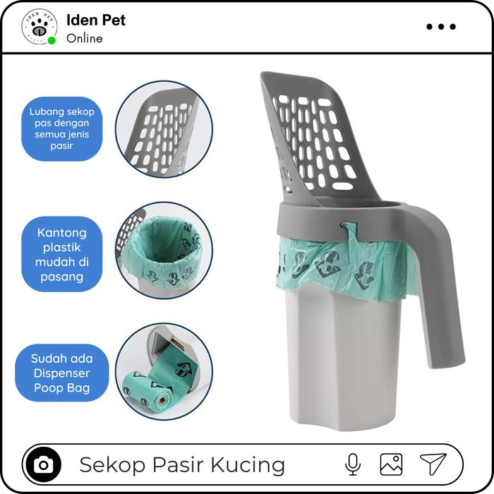 Sekop Litter Box Kucing Serokan Pasir Poop Pet Cat Scoop Bonus Dispenser Kantong Plastik - Sekop SET